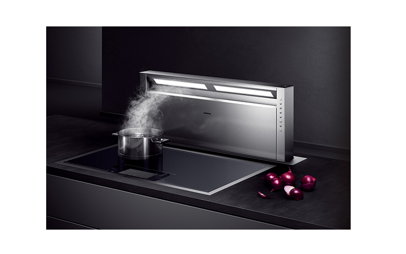 使用しない時は完全にカウンタートップの中に格納されてしまいます。調理が行なわれるクックトップの間近で、直接静かに効率良く水蒸気や臭いを排気します。これはアイランドキッチンや室内のオープンスペースに理想的な換気をもたらします。